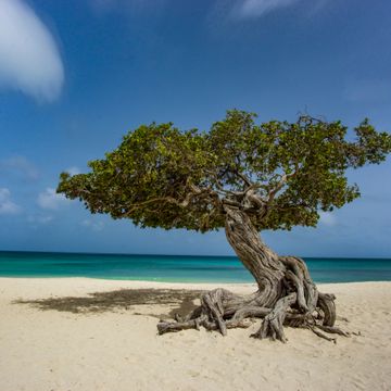 Tirar fotos na árvore Divi-divi, símbolo de Aruba